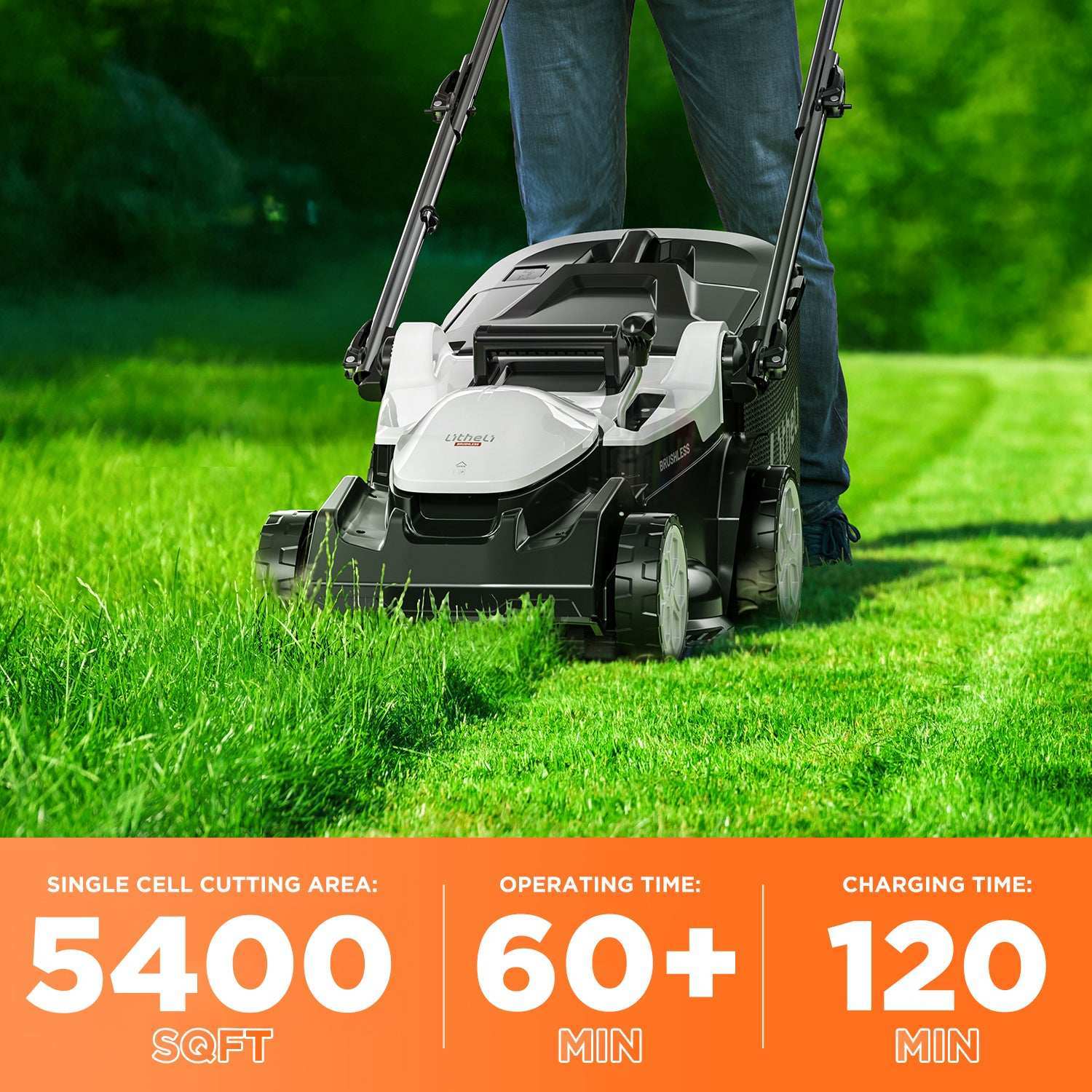 Powerful Brushless Motor: Litheli lawn mower adopts advanced brushless motor, which enhances power and reduces maintenance, making your mowing tasks smoother and more reliable.Plus,the powerful design reduces strain during use, making it ideal for users of all ages.